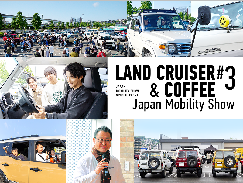 Japan Mobility ShowOrganizer: Toyota Motor Corporation, LAND CRUISER BASEThis is an official manufacturer off-site event where Land Cruiser fans, from long-time classic owners to new enthusiasts, can casually gather over a cup of coffee to exchange information and find new ways to enjoy their vehicles.