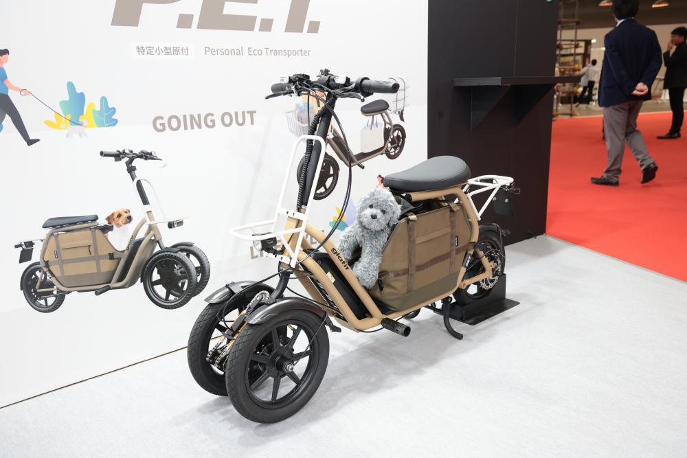 会場の展示では愛犬と移動をコンセプトにしたオプションを展示。愛犬と公園にお出かけするときや、動物病院やペットサロンへ行くときに、専用のバックをP.E.Tにとりけたら、そのまま愛犬と出かけられます。また、着いたらそのままペットキャリーバックとしてつかえる優れものです。
