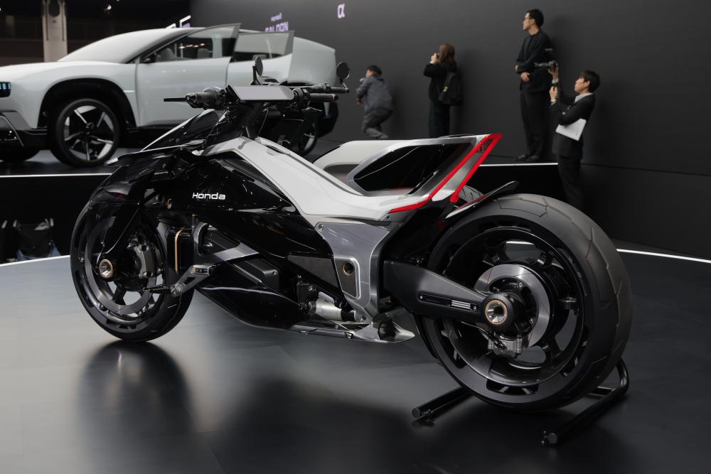 The concept model of an electric motorcycle being developed with a new approach that defies conventional ideas to deliver customers surprises, excitement and new experiences. Electric vehicle's design enables a clear view and thrilling acceleration for a unique ride.