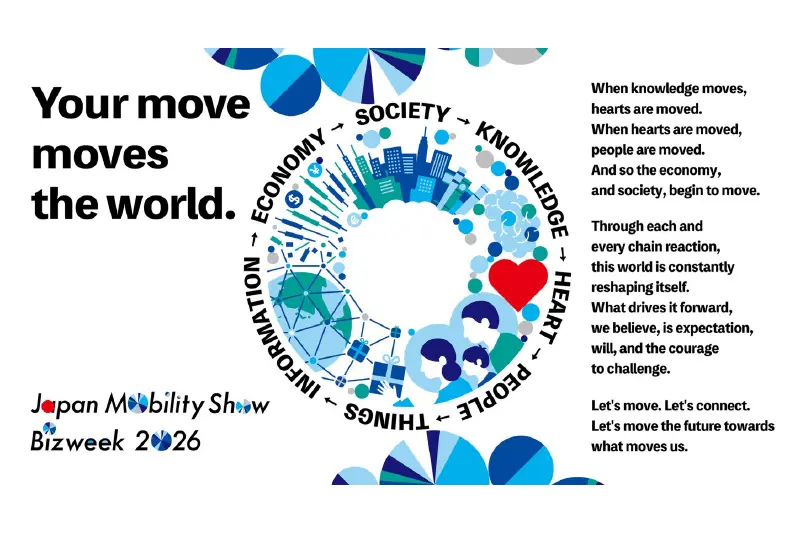 April 15, 2026Exhibitor Applications Now Available for Japan Mobility Show Bizweek 2026 -MOVE: The Co-Creation Theme Uniting Cross-Industry Businesses– Japan Mobility Show Bizweek 2026 Japan Mobility Show 2025 Japan Mobility Show Bizweek 2024 Japan Mobility Show 2023 ALL