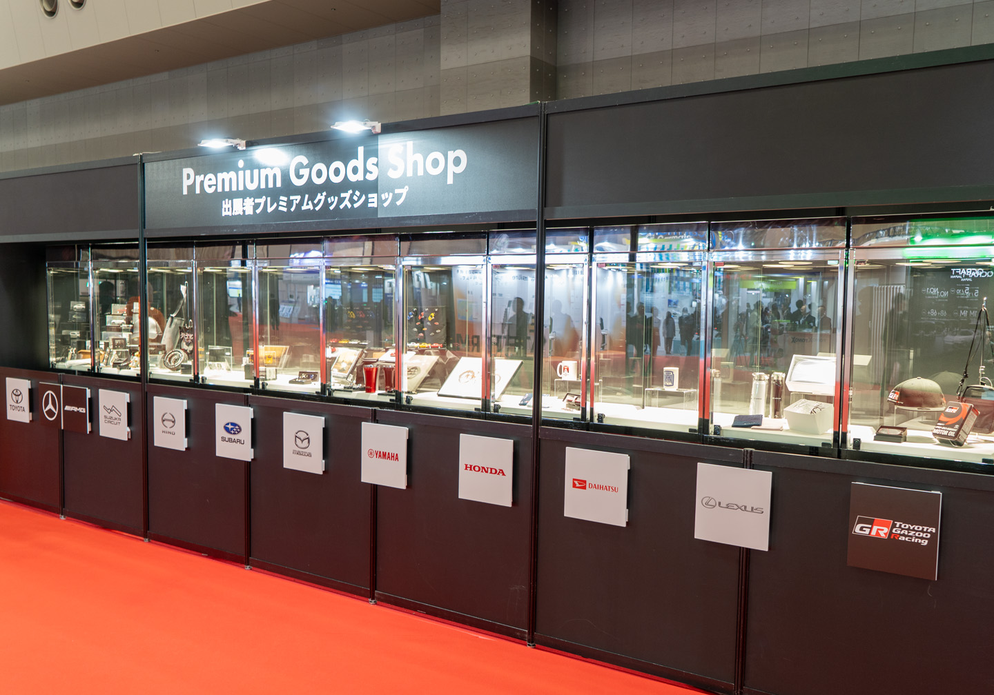 オフィシャルグッズショップに加え、第40回東京モーターショー(2007年)より、出展者プレミアムグッズショップを運営しております。このようなメーカーの垣根を越えたショップ形態は、東京モーターショーの魅力の1つとして、来場者の皆様にご好評をいただいておりましたので、引き続きJapan Mobility Show 2025でも運営します。出展者プレミアムグッズショップは、東展示棟東7ホールに設置し、今回は国内外から9社12ブランドが参加します。
