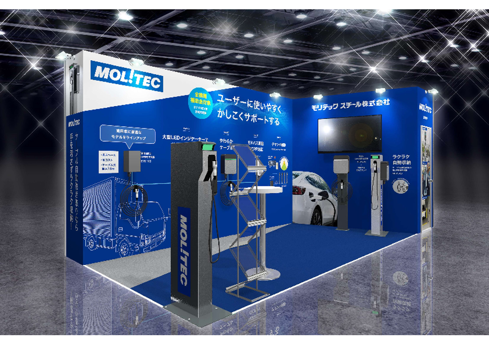将来像の提示に加え、当社がすでに提供しているEV充電器などの実機展示もあり、足元の取り組みもあわせて体感いただけます。
