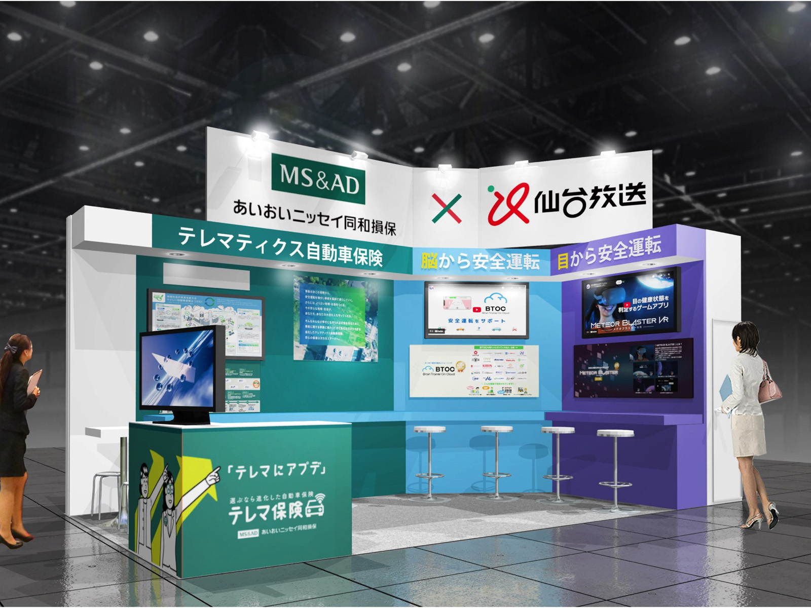 テレマティクス自動車保険・運転技能向上トレーニングBTOC(ビートック)を通じて、安全で快適な町づくりをリードします。データや先進技術を活用した交通事故の未然防止や、リスクを的確に把握・軽減する機能・サービスを提供し、安心な運転環境で持続可能なモビリティ社会の未来をみなさまと共に創造します。ブースでは、テレマティクス自動車保険とBTOCを疑似体験頂ける企画でお待ちしております。